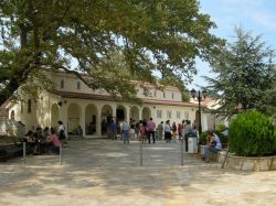 για να βάλει διώξει τους μικροπωλητές και τους επαίτες από τον περίβολο της Μονής, επειδή έκαναν φασαρία!